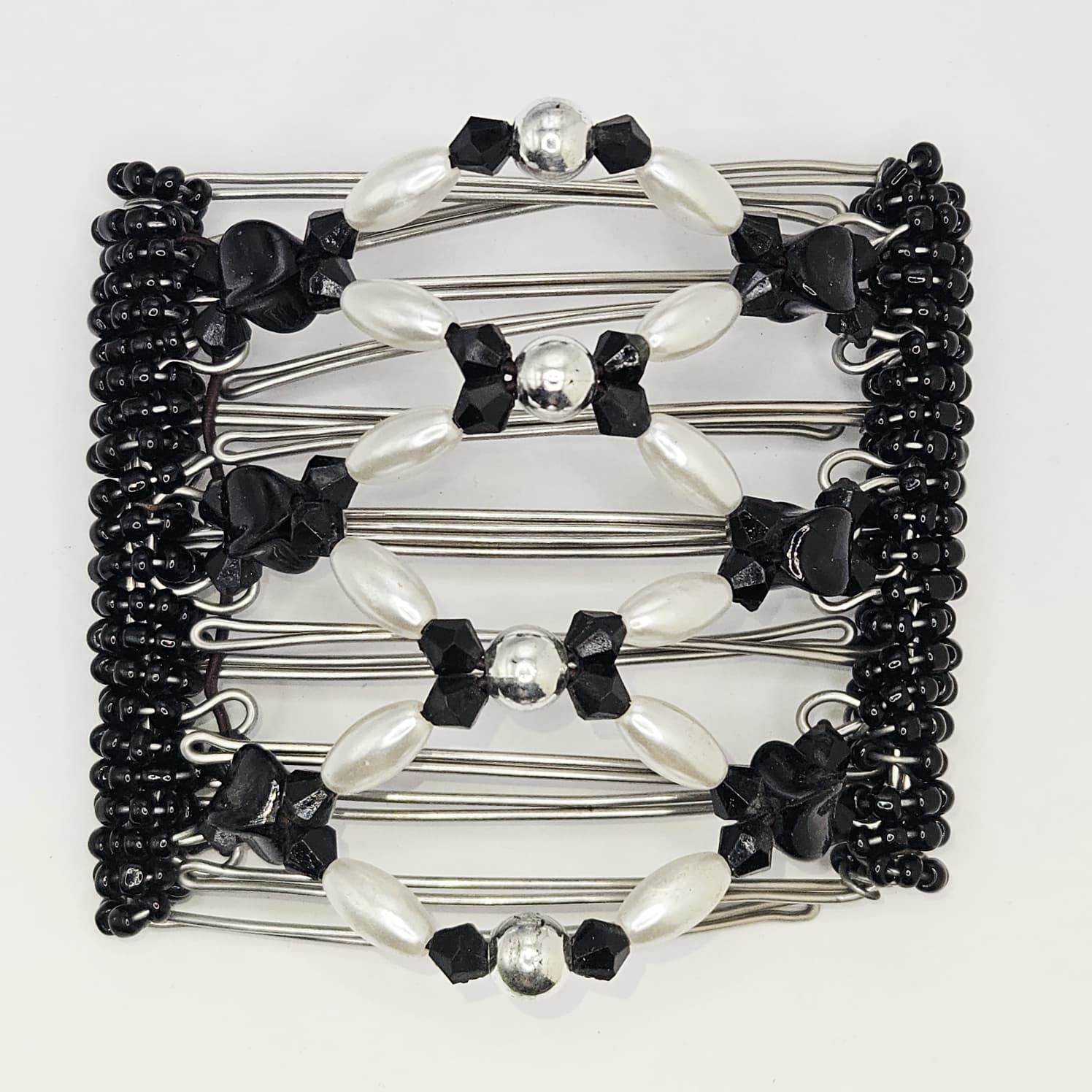 7 Tooth Medium Hair Comb, Hair Accessory, Black, White, Silver, Formal, Dressy, Elegant