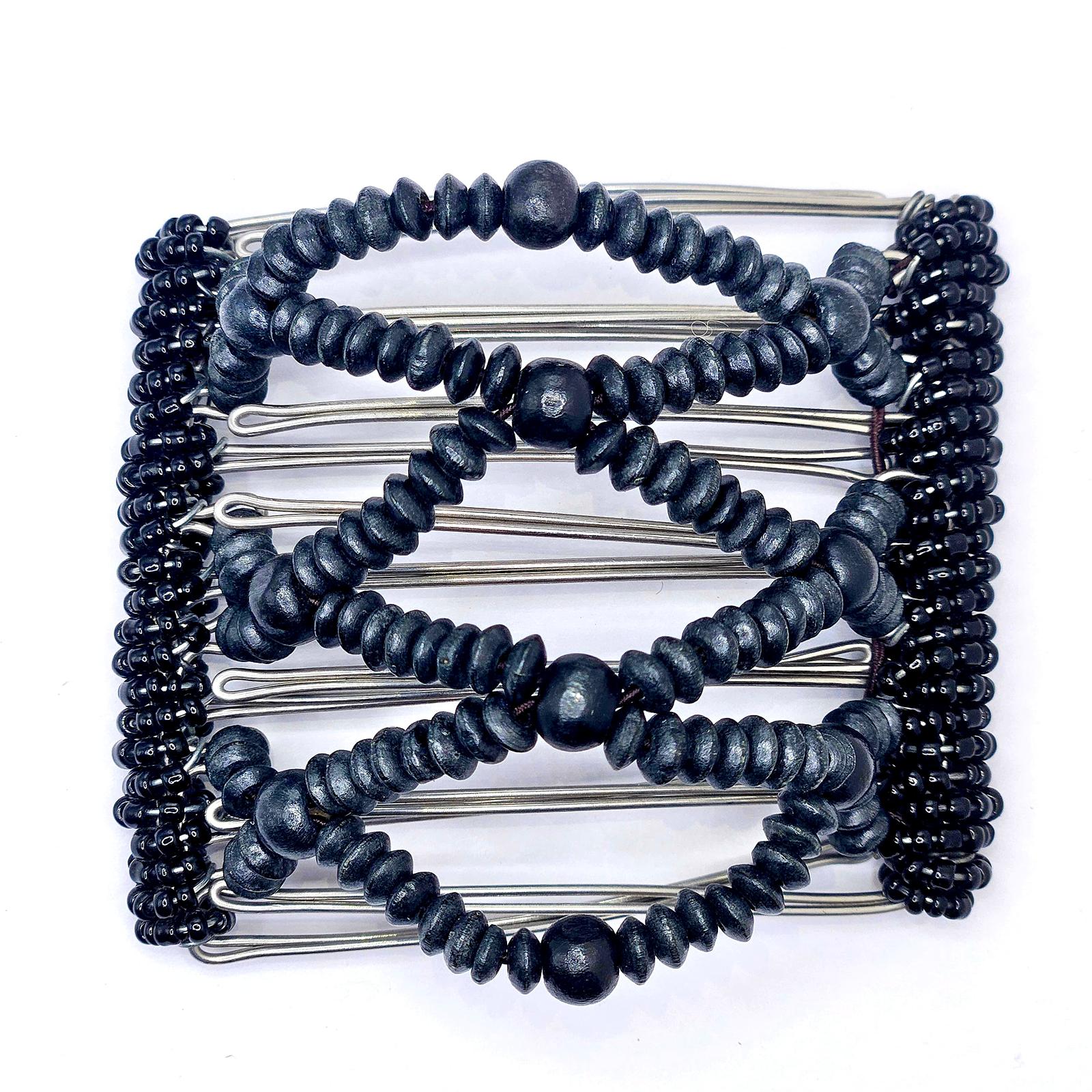 7 Tooth Medium Hair Comb, Minimalist, Black Wood, Small Beads, Unisex, Medium Hair, Understated