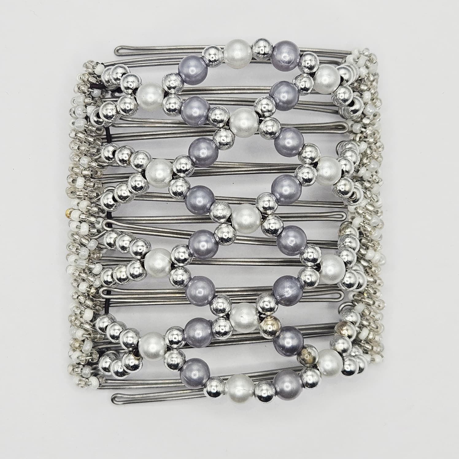 9 Tooth Large Hair comb,, Classy pearls, silver with shades of grey