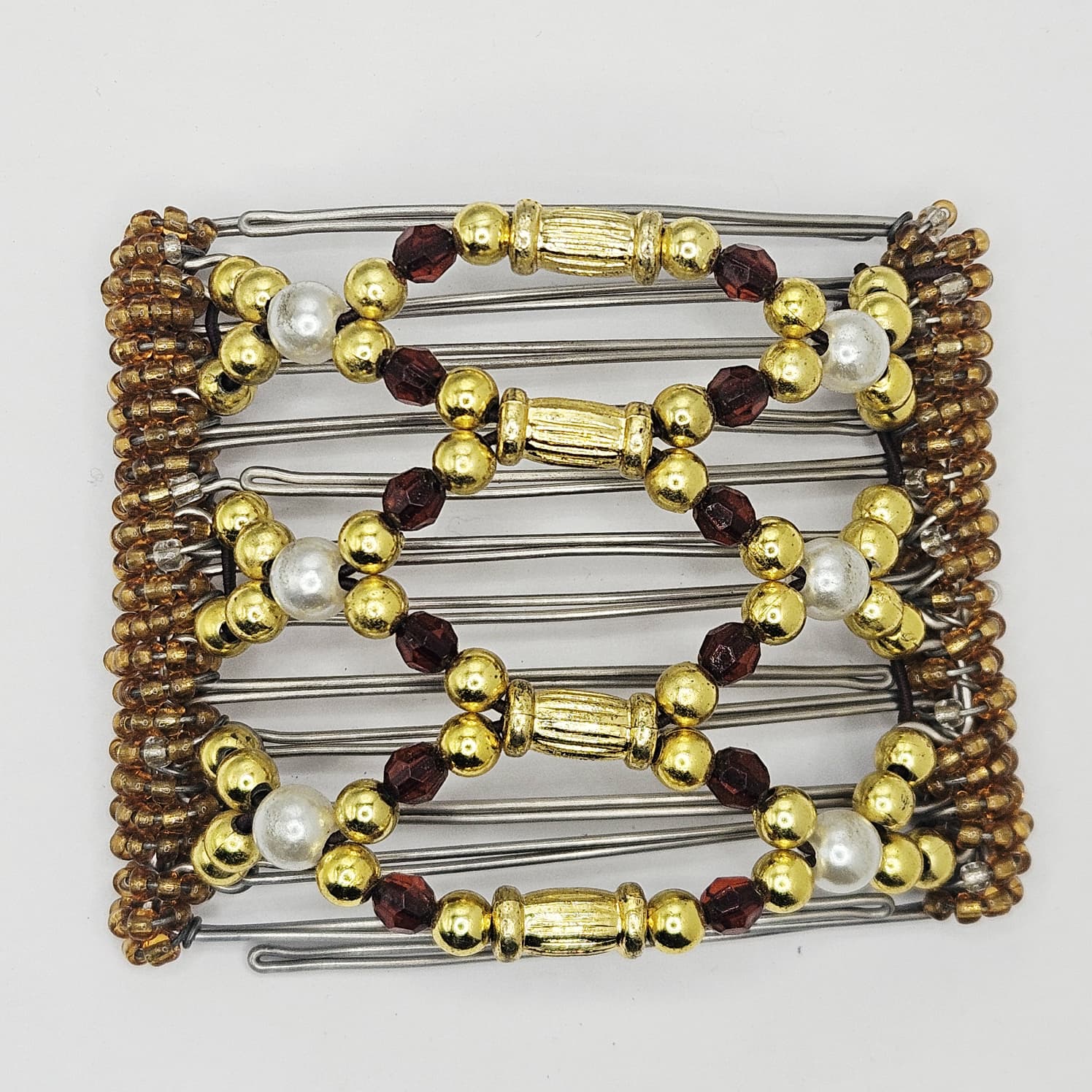 7 Tooth medium Hair comb, Garnet and gold pearls and class,