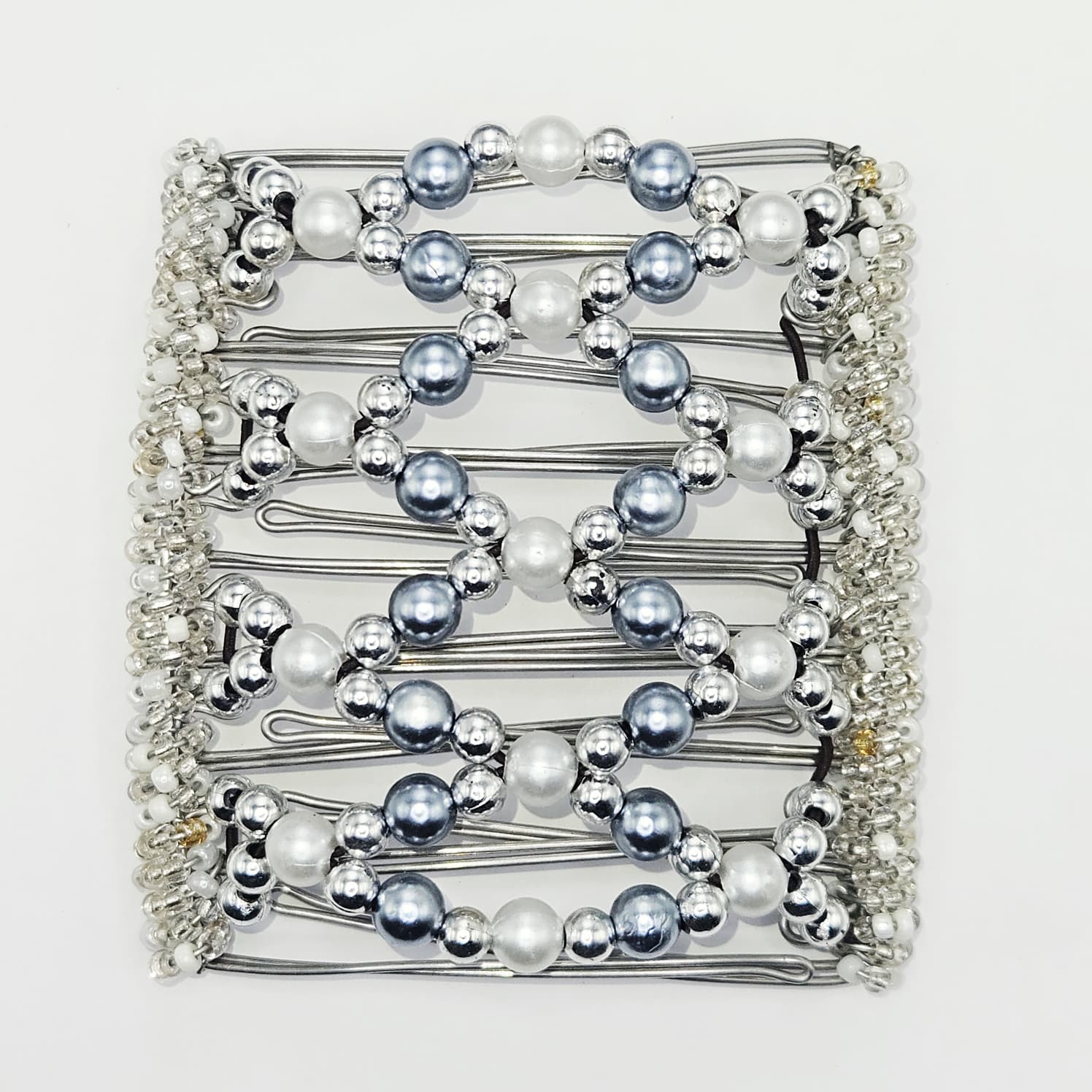 9 Tooth Large Hair comb, Classy pearls, silver with shades of grey