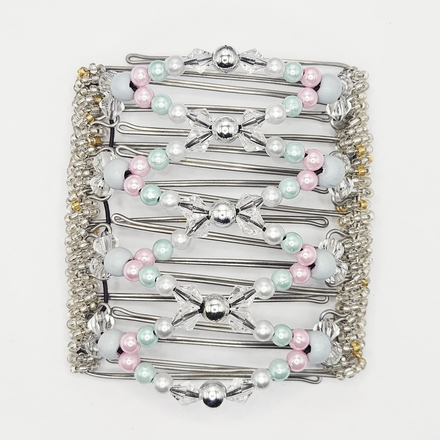 9 Tooth Large Hair comb,pink and sky-blue pearls, princess comb