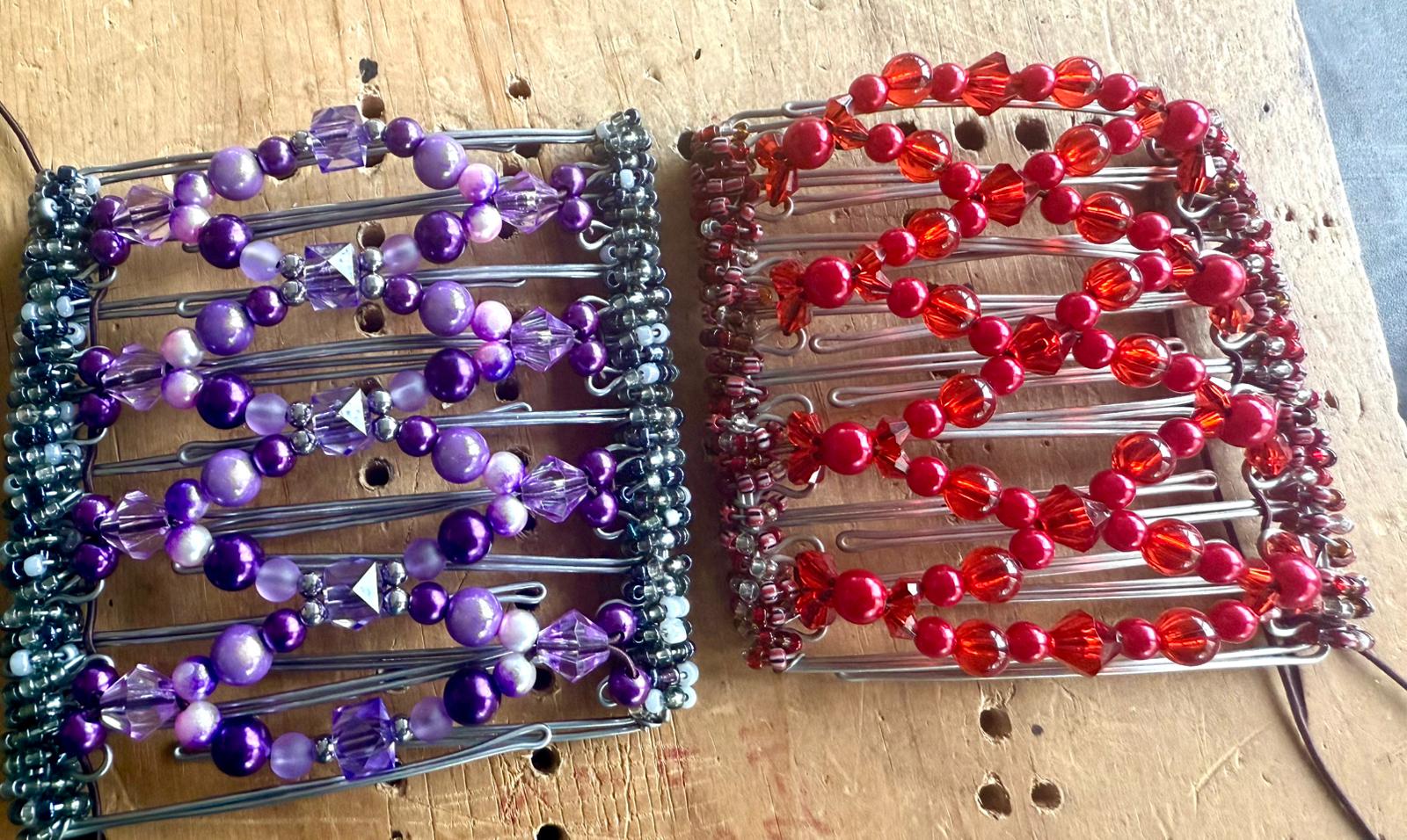 Both pieces feature flexible stainless steel hand bent combs with beautiful beaded detailing. Perfect for styling thick hair with elegance and hold.